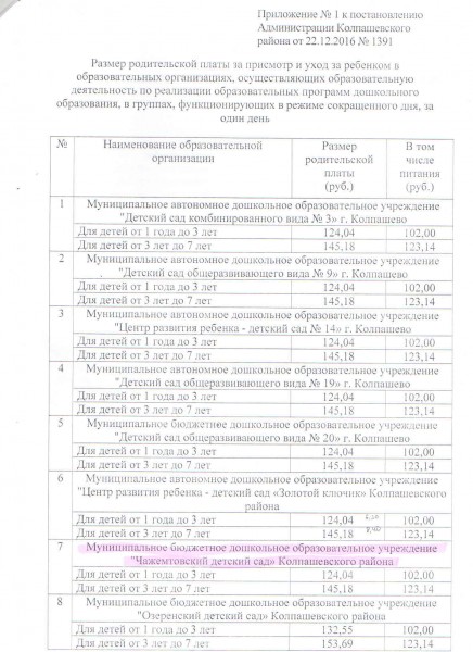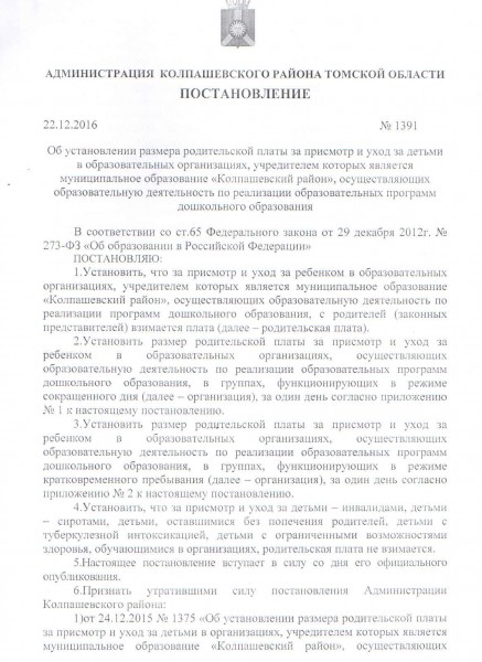 постановление Администрации Колпашевского района о размере родительской платы на 2022 год (скачать)